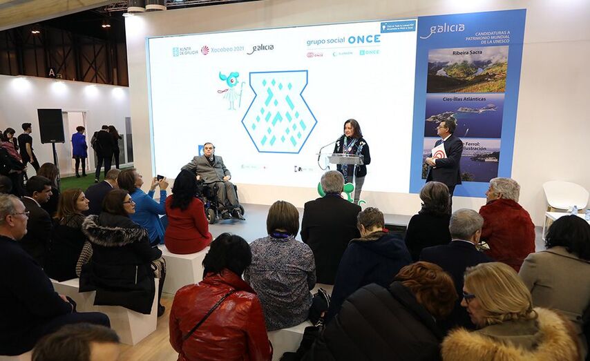 En la presentación del convenio, que tuvo lugar este jueves en el estand de Galicia en Fitur, estuvieron presentes Román Rodriguez González, consejero de Cultura, Educación y Ordenación Universitaria; Cecilia Pereira, consejera delegada de Xacobeo y comisaria de Xacobeo 2021; José Luis Martínez Donoso, director general de Fundación ONCE, y Jesús Hernández, director de Accesibilidad Universal e Innovación de Fundación ONCE.