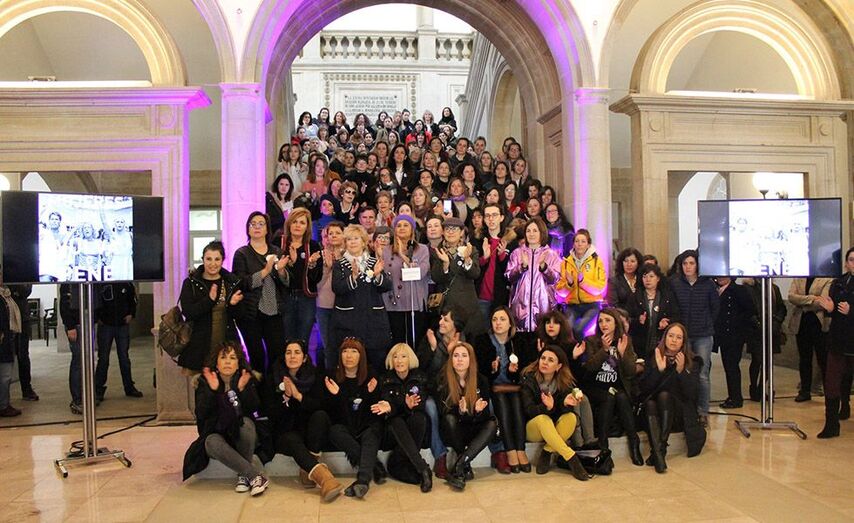 Por todo iso aquí estamos, alzando a nosa voz, sorrindo e felices de que a igualdade ocupe o espazo que lle corresponde. Aquí estamos, unidas e fortes.