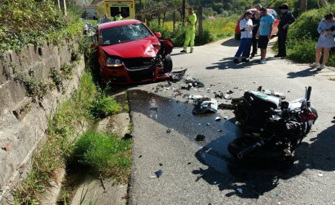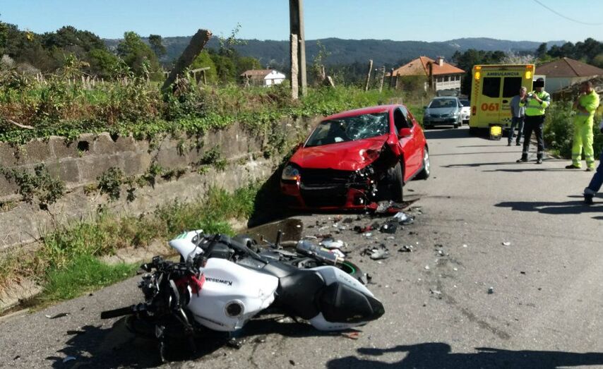 Una colisión frontal entre un turismo y una moto se salda con dos heridos uno de ellos, muy grave, fue trasladado por una ambulancia medicalizada al Hospital Álvaro Cunqueiro de Vigo.