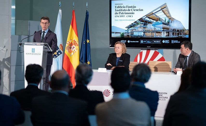 Logo de que o Consello da Xunta aprobara o pasado xoves o acordo co Consello Superior de Investigación Científicas (CSIC) para trasladar o Instituto de Ciencias do Patrimonio (Incipit), o presidente da Xunta, Alberto Núñez Feijóo, afirmou hoxe, durante o acto de sinatura, que esta nova incorporación ao Edificio Fontán contribuirá a seguir facendo do Gaiás un polo de cultura, coñecemento e investigación.