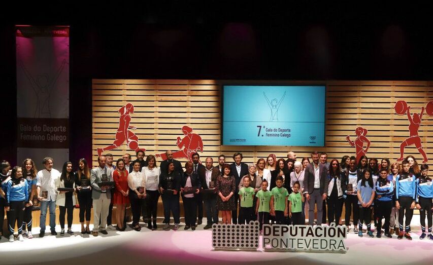Os VII Premios do Deporte Feminino Galego encheron hoxe o Auditorio Municipal de Vilagarcía de éxito, talento, esforzo e igualdade. Preto dunha vintena de mulleres deportistas e entidades vinculadas a este ámbito foron galardoadas na gala organizada pola Deputación de Pontevedra e impulsada pola Asociación de Mulleres Deportistas Galegas (Mudegá), un evento que ten por obxectivo darlle máis visibilidade aos triunfos que cada ano colleita o deporte feminino galego para que sexa máis recoñecido pola sociedade. A Gala converteuse tamén nun canto unánime á igualdade que estivo presente nas intervencións das autoridades asistentes como o alcalde de Vilagarcía, Alberto Varela, a presidenta de Mudegá, Mercé Barrientos, o secretario xeral do Deporte, Lete Lasa, e a presidenta da Deputación, Carmela Silva.