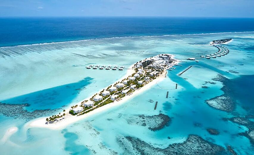 En este proyecto de la compañía nada se ha dejado al azar. Ha supuesto un arduo trabajo que se inició a principios de 2017 y se ha llevado a cabo durante más de dos años, para dar lugar a estos dos resorts Todo Incluido. Se trata de dos hoteles, en dos islas diferentes, que se han unido entre ellas con una impresionante pasarela de 800 metros sobre el agua, a ambos lados de la cual se ubican las 72 suites sobre el agua del Riu Palace Maldivas.