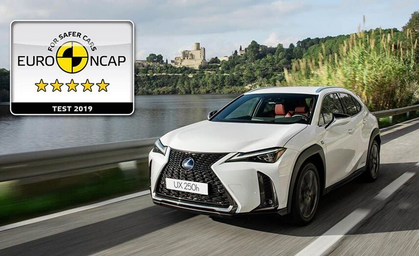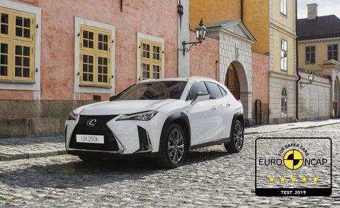 El nuevo crossover compacto premium Lexus UX 250h Híbrido ha alcanzado la máxima puntuación de seguridad de vehículos, de 5 estrellas, en los resultados de las pruebas Euro NCAP 2019.