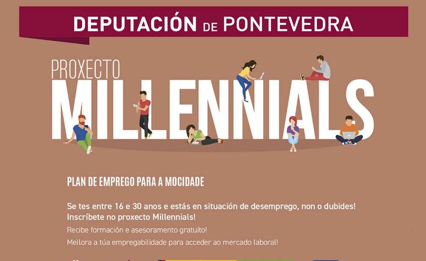 Ata o vindeiro día 19 deste mes de xullo está aberto o prazo de inscrición nos dez cursos que a Deputación de Pontevedra programou dentro do Proxecto Millennials 2019, un plan dirixido á mocidade da provincia co obxectivo de mellorar a súa empregabilidade e acceso ao mercado laboral, a través de formación e asesoramento gratuíto ligado ao emprendemento. Este proxecto enmárcase no convenio de colaboración entre a institución provincial e a Escola de Organización Industrial, dentro do Programa Operativo de Garantía Xuvenil.