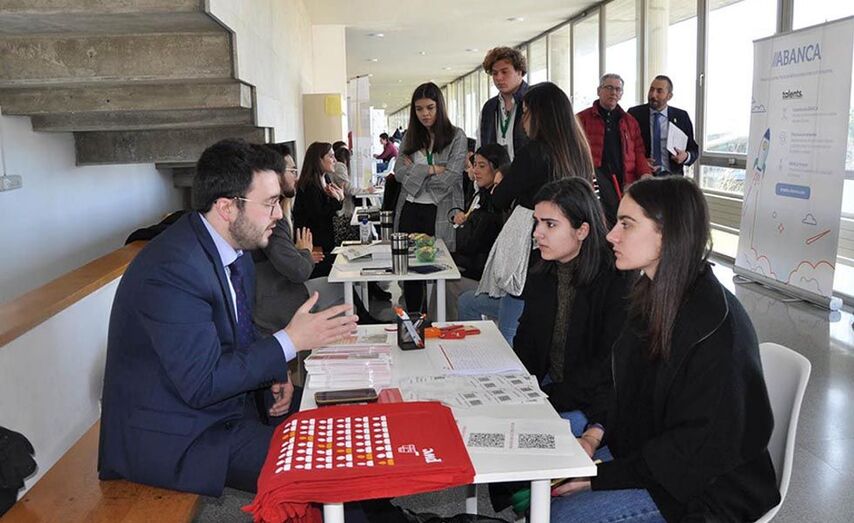 As principais consultoras e despachos de avogados do país, algunhas das firmas máis relevantes dos sectores textil, alimentario e biotecnolóxico, entidades bancarias, aseguradoras e organismos públicos participan hoxe mércores e mañá xoves na Facultade de Ciencias Económicas e Empresariais na segunda edición de Foro Empleo, unha cita na que ao longo de dous días coinciden decenas de estudantes desexosos de incorporarse ao mundo laboral con múltiples profesionais na busca de novos talentos, canteira coa que inxectar “aire fresco” aos cadros de persoal das súas compañías.