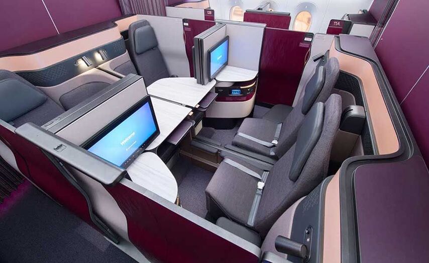 La compañía de Qatar habla de "un nuevo nivel de innovación". En 2019 fue galardonada como la mejor clase de negocios del mundo en los Skytrax World Awards y solo hay que conocer algunos detalles para entender por qué: asientos de casi 55 cm. de ancho y 200 cm. de largo en modo cama, con una variedad de almohadas, cojines acolchados, edredón de pluma de ganso, ropa de dormir y zapatillas de The White Company. Además, el espacio privado se puede personalizar de acuerdo con las necesidades del viajero y sus compañeros de viaje, los paneles móviles transforman la cabina en un área en la que trabajar, como si fuera una oficina o un área de juego, en la que comer o divertirse si viaja en familia, en un entorno de total privacidad. Y para el entretenimiento hay 4.000 opciones con las que es imposible aburrirse.