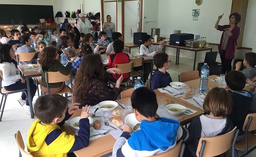 No curso pasado o alumnado deste centro educativo tomou o seu primeiro contacto e aprendeu as nocións básicas desta lingua. Este curso son as profesionais do comedor escolar as que recibiron formación para saudar, presentar o menú e comunicarse durante este xantar silencioso.