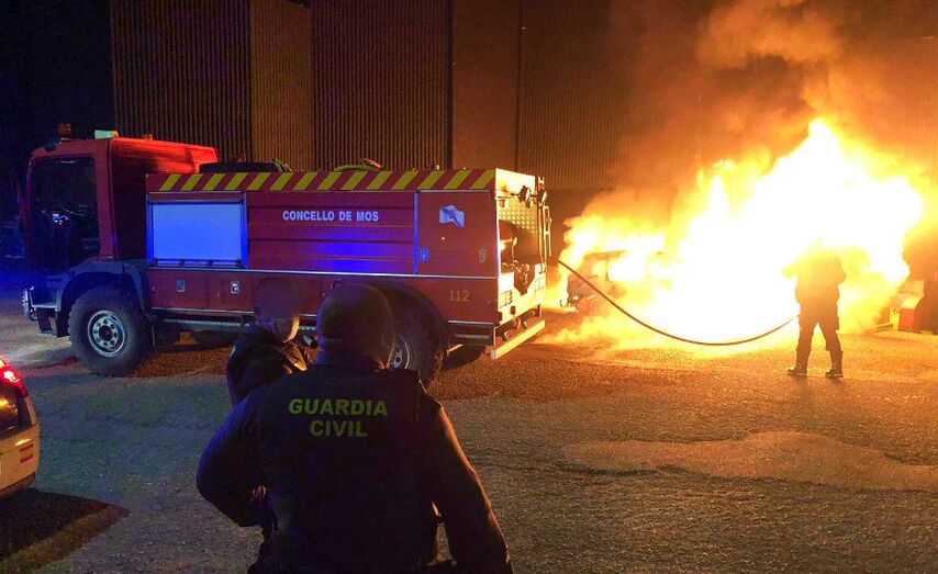 Pasadas las 5.00 de esta madrugada el Servicio Municipal de Emergencias de Mos acudía a una llamada que alertaba de un vehículo ardiendo en Salguiñeda, al lado de una conocida salas de fiestas.