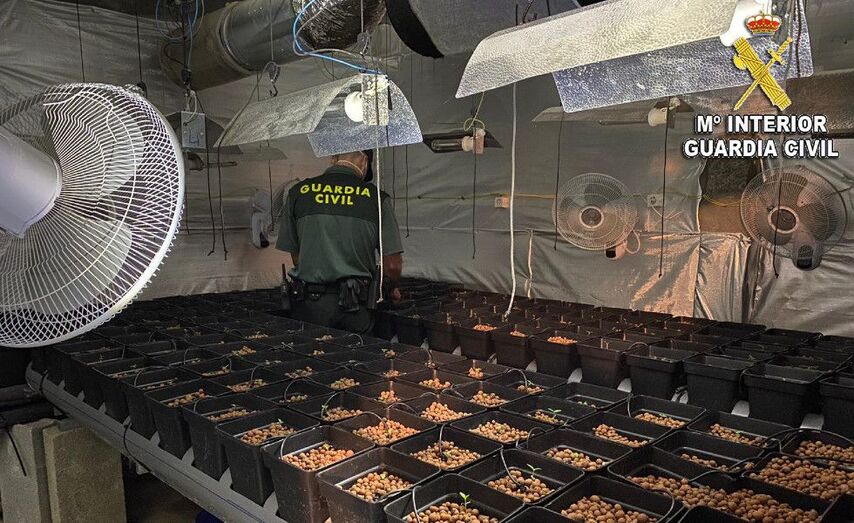 Se incautaron unas 300 plantas pequeñas de marihuana en tarros, con sistema independiente de riego cada una, ocho ventiladores sujetos a las paredes, 12 lámparas con bombillas de 600 vatios, dos ventiladores de extracción con un filtro cada uno, 12 transformadores de las lámparas y el cuadro eléctrico, así como diverso material para el cuidado de las mismas.