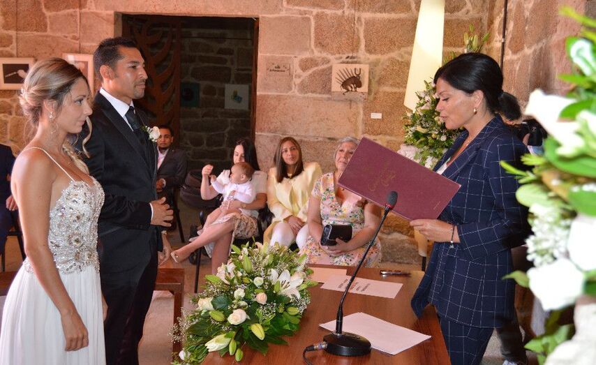 Os contraíntes son veciños de San Antoíño, parroquia de Louredo, e nados en Perú e Brasil, respectivamente. Estiveron acompañados de cadansúas familias (respectando o máximo de convidados establecido por lei para esta nova normalidade condicionada polo COVID-19) e a súa mascota foi a encargada de levarlles as alianzas.