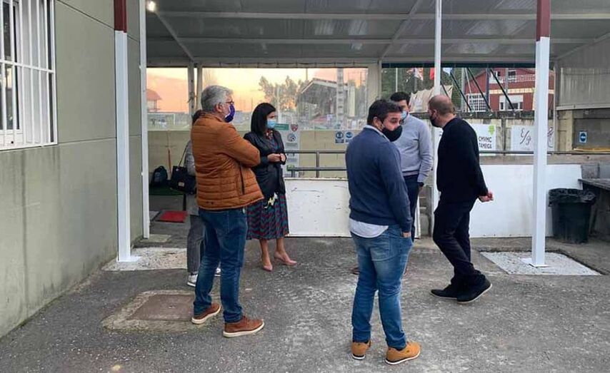 A alcaldesa de Mos, Nidia Arévalo, o tenente alcalde e concelleiro de Vías e Obras, Camilo Augusto, e a edil mosense de Deportes, Begoña Toucedo, visitaron esta semana o Campo de Fútbol de Cototorrón, acompañados polo presidente do Club Louro Tameiga, Patricio Farrapeira, con motivo do inicio das obras con cargo ao Plan Concellos 2020 polas que se está a acometer un proxecto de cerramento, aproveitamento, e cubrición da zona común de Cototorrón.