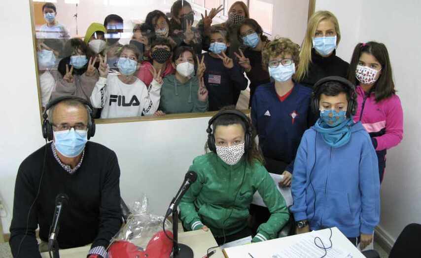 Juan González acudíu como invitado á emisora escolar para ser entrevistado por nenos de sexto de primaria