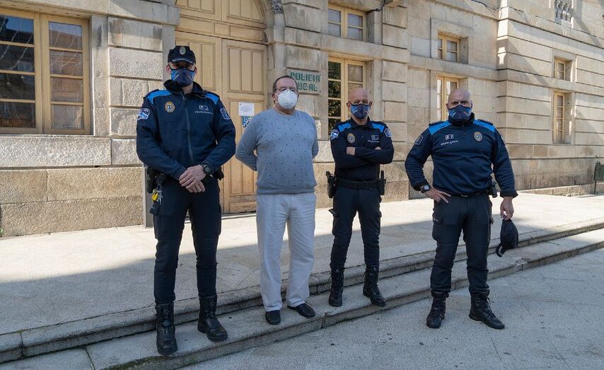 José Ramírez Pérez formou parte da plantilla da Policía Local durante 37 anos sendo o inspector xefe até a súa xubilación o ano pasado. Manuel Arca, actualmente inspector xefe, suma 33 anos de servizo e en 1999 recibía a insignia do concello pola súa intervención na resolución dun secuestro no monte Aloia.  Avelino Martínez leva 31 anos no corpo da Policía Local e David González está a piques de cumprir 17 anos coma axente.
