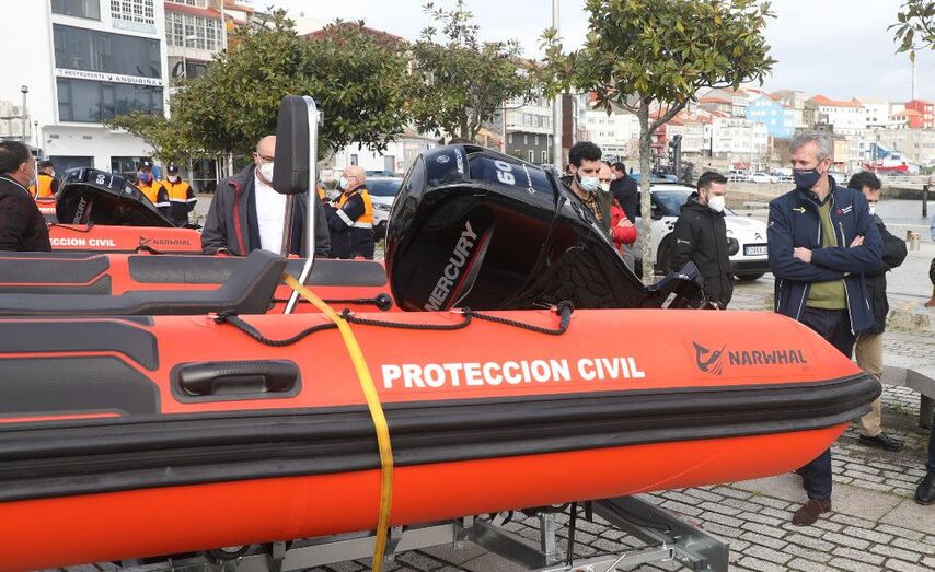 O vicepresidente primeiro, Alfonso Rueda, fixo entrega onte de 4 embarcacións pneumáticas semirríxidas destinadas a Agrupacións de Voluntarios de Protección Civil (AVPC) para actuacións de salvamento e rescate nos concellos de Fisterra, Valdoviño, Barreiros e Vilagarcía de Arousa.