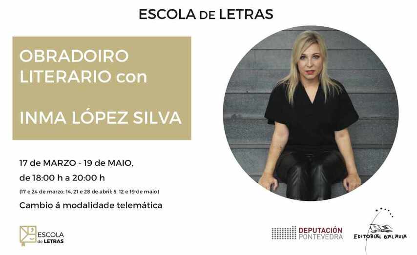 A segunda edición da Escola de Letras da Deputación de Pontevedra e a Editorial Galaxia botará a andar o vindeiro luns, 15 de marzo, e o fará de xeito telemático debido á situación sanitaria. Deste xeito, as dúas primeiras sesións dos dous primeiros cursos previstos, que impartirá a escritora Inma López Silva e que se ían desenvolver de xeito presencial nas sedes da institución en Vigo e Pontevedra, celebraranse a través da ferramenta Google Meet.