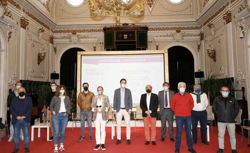 O Salón de Plenos do Pazo Provincial acolleu un “acto de orgullo”, no que a Deputación de Pontevedra quixo facer un recoñecemento público aos clubs masculinos de elite da provincia, como na pasada semana o fixo cos femininos. A presidenta, Carmela Silva, e o deputado de Deportes, Gorka Gómez, recibiron a representantes do Club Balonmán Cangas, Club Cisne de Balonmán, Coruxo C.F., GD Supermercados Froiz, Club Ciclista Rias Baixas, Club AMFIV, Gimnástica de Pontevedra, Bádminton Ravachol, Tenis de Mesa Monte Porreiro e da Agrupación Deportiva Vincios.