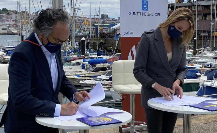 A delegada territorial da Xunta en Vigo, Marta Fernández-Tapias, firmou co presidente da Fundación Traslatio, Mario Cardama, o convenio de colaboración que ratifica o compromiso do Executivo autonómico coa celebración da Ruta Iacobus Maris 2022. Un proxecto xurdido ao abeiro da “Ruta Marítima do Cabaleiro das Cunchas”, promovida neste caso pola Asociación de Amigos da Ruta Marítima e que anualmente impulsa unha ruta de navegación unindo Portugal e Galicia.