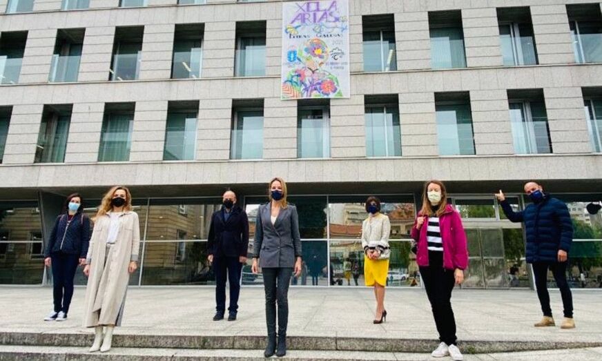 A homenaxe do IES Ribeira do Louro a Xela Arias loce na fachada da Xunta en Vigo