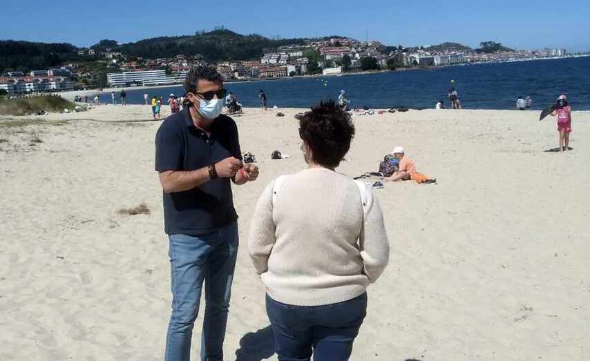 El Alcalde de Baiona, Carlos Gómez Prado, y la concejala de medio ambiente, Rosa María Domínguez Roda, se acercaron hasta al arenal para acompañar al alumnado.