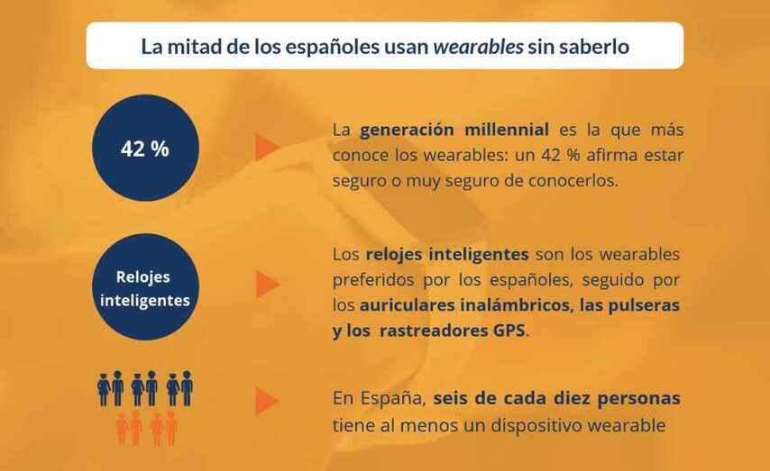 El anglicismo “wearable” se ha hecho un hueco entre los amantes de la tecnología, hace referencia a dispositivos electrónicos inteligentes que se pueden incorporar a la ropa o al cuerpo, bien como implantes o como accesorios. Según datos del estudio de idealo, la generación millennial es la que tiene mayor conocimiento sobre estos productos inalámbricos: un 42 % de los encuestados afirma estar seguro o muy seguro de conocerlos. En la actualidad, encontramos diferentes tipos de dispositivos.  Los resultados de la encuesta realizada por el comparador muestran que los relojes inteligentes o smartwatches son los wearables preferidos por los españoles, seguidos por los audífonos inalámbricos, pulseras y rastreadores GPS.