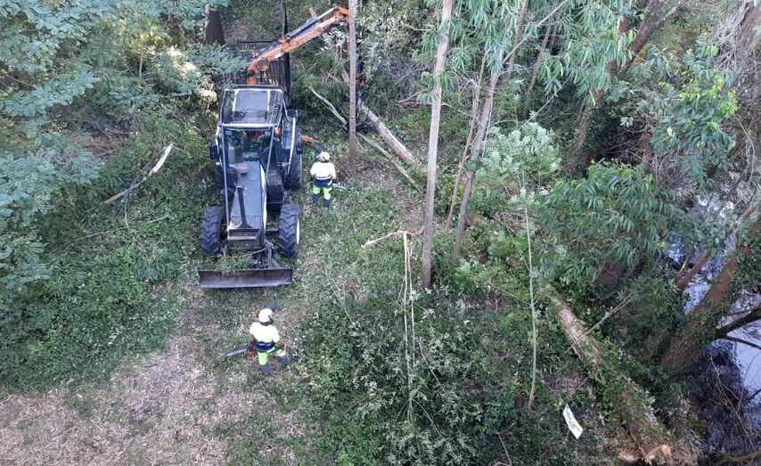 Veñen de ser retirados dous eucaliptos que presentaban perigo de caída na beira do río Louro, na zona de Ricamonde, por debaixo da ponte situada na estrada N550.