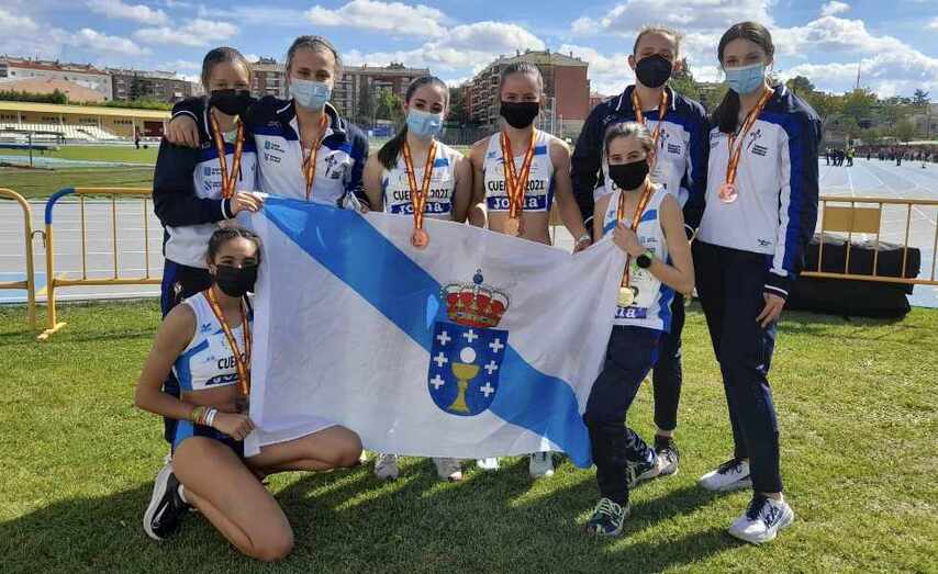 Aleksandra Kostenko nos 5.000 marcha con 14:45.37, Arauia Al Bachere nos 300 con 47.76; Nayr Cortegoso en lonxitude con 5.31 m.; Antía Pernas nos 100 con 12.77; Lisa Vosberg en pértega con 2.90 e o relevos dos 4x100 feminino (Pernas, Al Bachere, Rial e Cortegoso) lograban sendos terceiros postos das súas respectivas probas e que poñían en valor o importante peso do atletismo feminino da nosa selección.