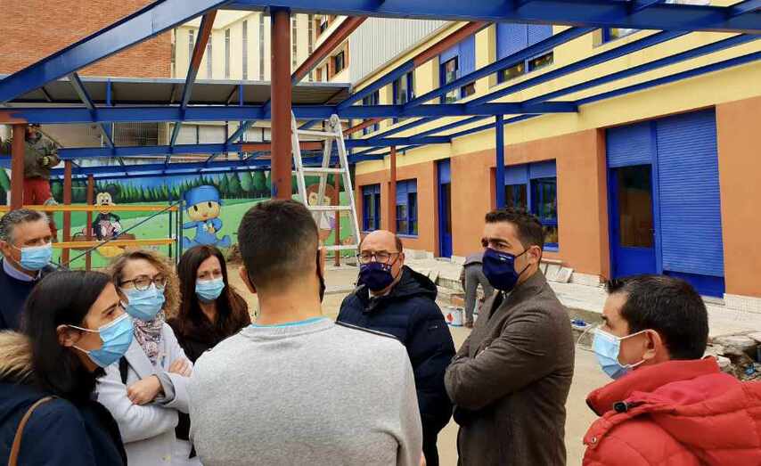 O delegado territorial da Xunta en Pontevedra, Luis López, acompañado da alcaldesa de Ponteareas, Cristina Fernández, e do xefe territorial de Educación, César Pérez, supervisou esta semana as obras de construción, actualmente en marcha, dun patio cuberto no CEIP Plurilingüe Nosa Señora dos Remedios.
