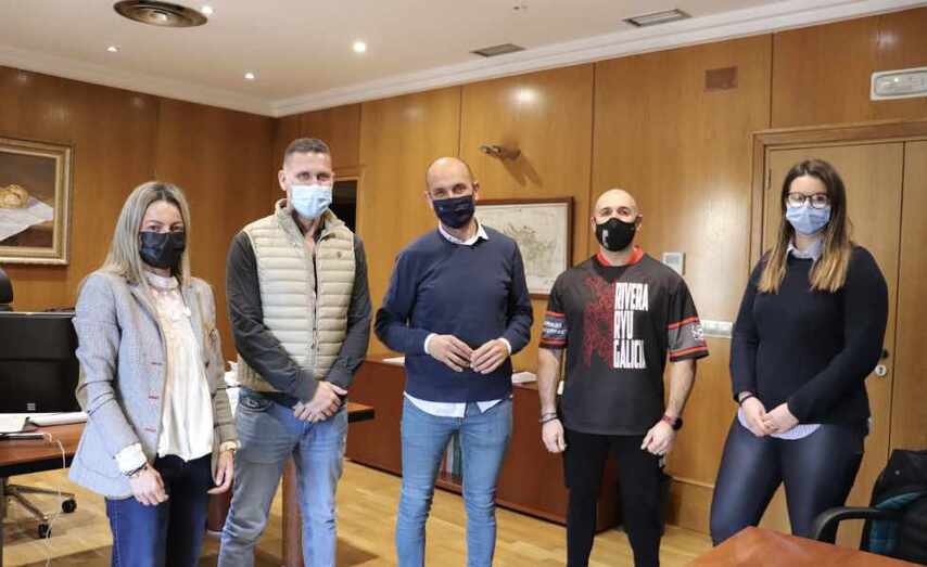O alcalde, Alejandro Lorenzo, as concelleiras Carolina González e Antía Carrera, o inspector xefe da Policía Local, Daniel Rodríguez, e o monitor encargado de impartir a formación, Óscar Eiroa, mantiveron unha xuntanza para facer unha valoración da actividade e perfilar novas accións na mesma.