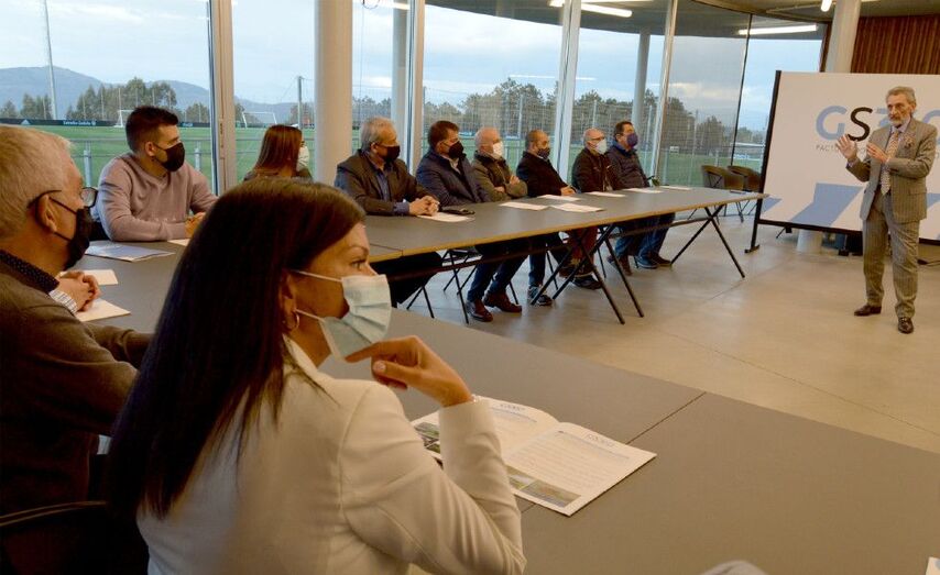 Esta tarde expuxo ante corporativos e Comunidades de Montes e de Augas de Pereiras os detalles do proxecto co que o Celta crecerá en Mos, creando un espazo referente internacional, denominado Galicia Sports 360, que incluirá Universidade do Deporte e no que o clube prevé investir 70 millóns de euros
