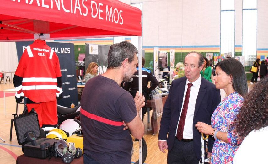 Tras a visita institucional á mostra a alcaldesa de Mos, Nidia Arévalo, destacou “a gratitude aos representantes dos mais de 40 expositores chegados desde Galicia, Navarra e Madrid pola súa participación”. Entre eles atópanse as Forzas Armadas, Garda Civil e Policía Local, AEMOS, Universidades de Vigo e da Coruña, etc. E a rexedora local mosense puxo en valor sobre todo “a importancia desta mostra que é de gran interese tanto para mozos/as, familias e centros educativos e unha inmellorable oportunidade para coñecer de primeira man as posibilidades educativas existentes en función das necesidades, intereses, obxectivos e perfil do usuario/a. Esta mostra coincide co comezo do periodo de matriculación do alumnado de Bacherelato en: Universidades, Ciclos Formativos, Academias ou Corpos de Seguridade, etc. Polo que con ela preténdese dar respostas ás inquedanzas: do estudantado e das súas familias, así como a toda a veciñanza interesada na procura de saídas profesionais con futuro laboral. Abrangue todo o abano de possibilidades, desde formación universitaria a ciclos, estudos musicais, escola de pilotos, azafatas…etc. É importante visibilizar a necesidade tamén da Formación Profesional e que a mocidade non crea que a clave do éxito está somentes na Universidade. A profesionalización en todos os sectores é clave para a economía e para a sociedade”, concluiu a alcaldesa.