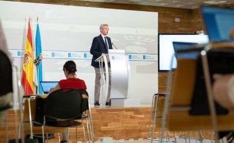 El presidente de la Xunta de Galicia, Alfonso Rueda, acompañó hoy a Sus Majestades los Reyes de España y sus Altezas Reales a Princesa de Asturias y la Infanta doña Sofía a la Ofrenda Nacional al Apóstol Santiago y a la Santa Misa en la Catedral de Santiago de Compostela. Al final de la celebración, el titular del Gobierno gallego los acompañó en la firma del Libro de Oro de la Ciudad en la sede municipal del Pazo de Raxoi.