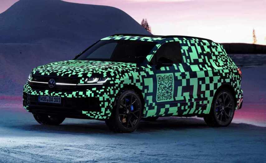 O novo Touareg camuflado segue completando os seus últimos quilómetros de probas na Laponia sueca. Aínda que as modificacións de deseño seguen ocultas baixo unha rotulación cun código QR de gran tamaño, as imaxes do prototipo camuflado xa ofrecen un anticipo dos primeiros detalles técnicos. No frontal, por exemplo, é posible ver os faros matriciales IQ.LIXEIRO HD de novo desenvolvemento e unha nova tira de luces LED integrada entre eles.
