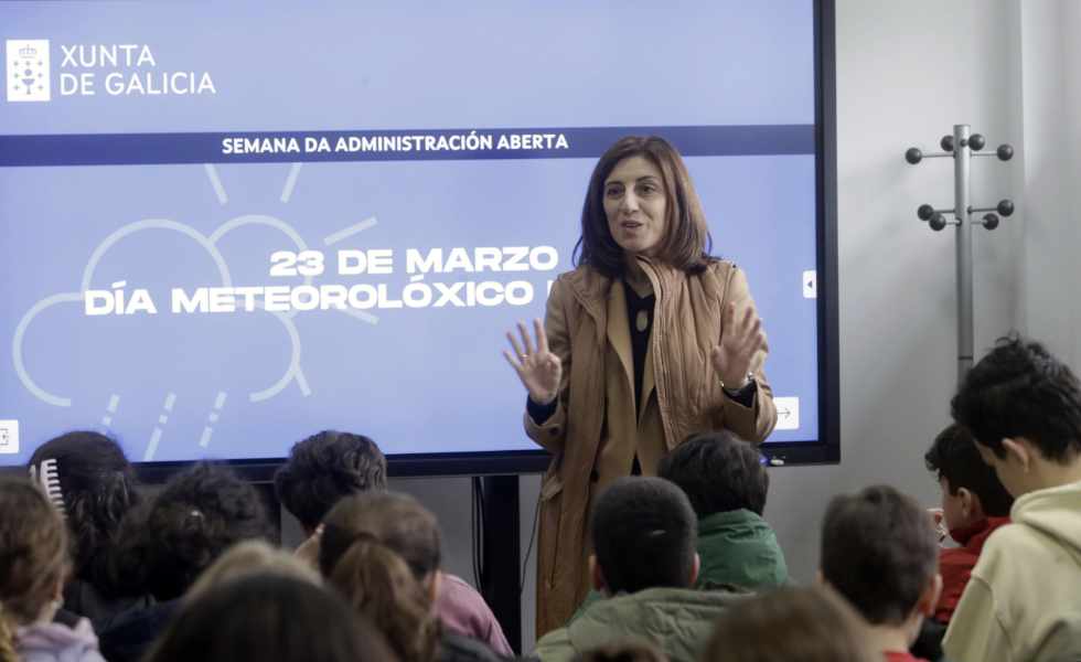 A conselleira de Medio Ambiente, Territorio e Vivenda, Ángeles Vázquez, agradeceu o papel dos máis novos na loita diaria contra o cambio climático. Así o dixo na visita que realizou ás instalacións de MeteoGalicia xunto con alumnado de sexto curso de educación primaria do CEIP Vilaverde-Mourente de Pontevedra, co gallo da celebración da Semana da Administración Aberta, unhas xornadas de participación social que organiza a Xunta para dar a coñecer o funcionamento do Goberno galego e da administración pública autonómica.