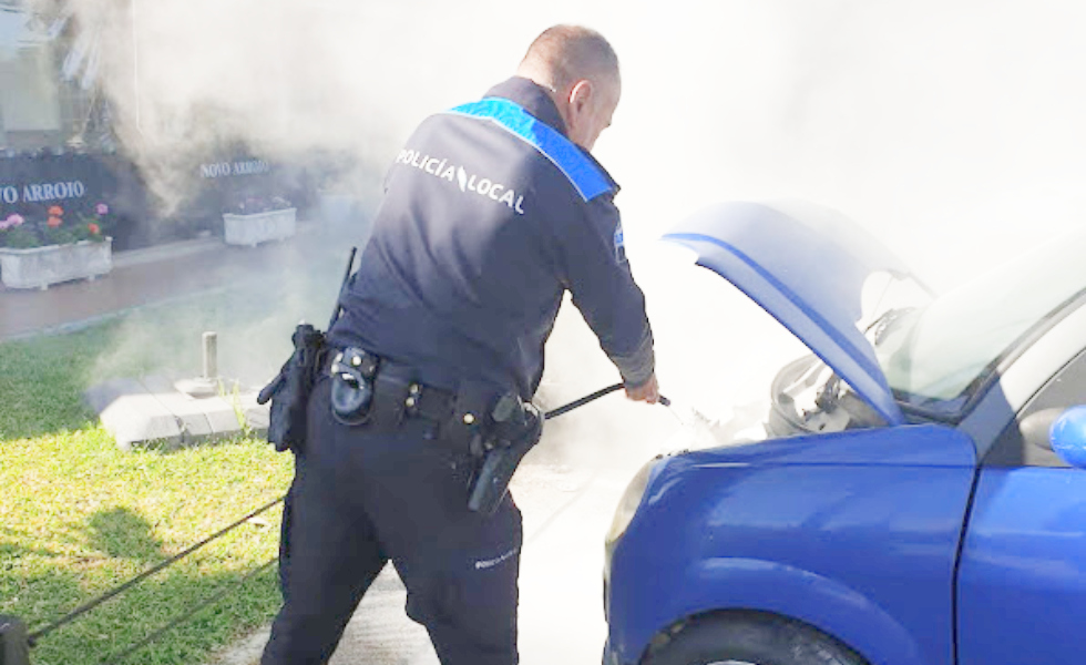 Utilizado el extintor del coche patrulla para apagar las llamas