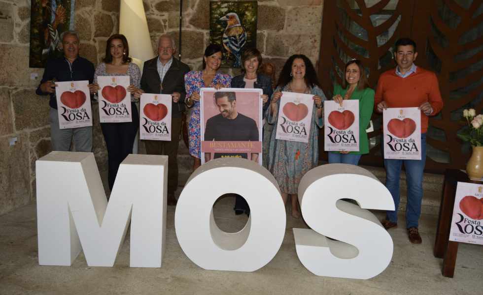 Na presentación da L Edición da Festa da Rosa que tivo lugar esta mañá no Pazo de Mos estiveron presentes a Directora Turismo de Galicia, Nava Castro, a Alcaldesa, Nidia Arévalo, representantes da productora Esmerarte, das asociacións culturais mosenses, Asociación de Hostaleiros, Mulleres Rurais, clubes deportivos implicados na programación, o gaiteiro Xulio Lorenzo, membros da directiva da Fundación Pazo de Mos, a Concelleira de Cultura, Turismo e Participación Cidadá, Sara Cebreiro e demáis membros do Goberno local.