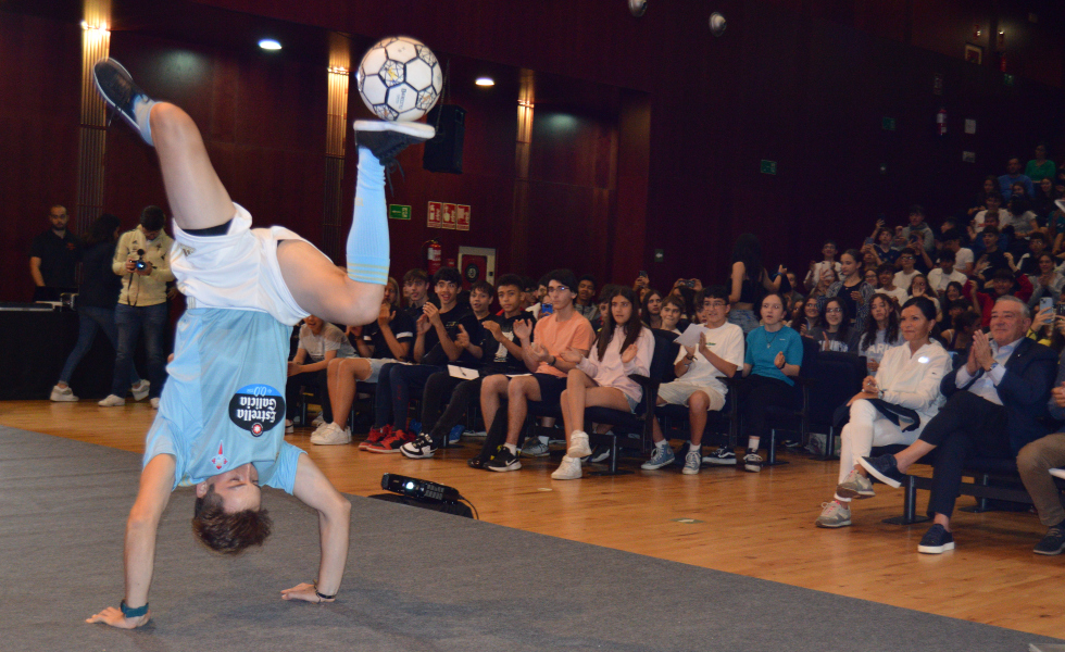 Nun ambiente moi distendido, os alumnos do IES participaron tamén dun show Freestyle a cargo de Alejandro Portilla no que mesmo se lles invitou a participar dous deles.