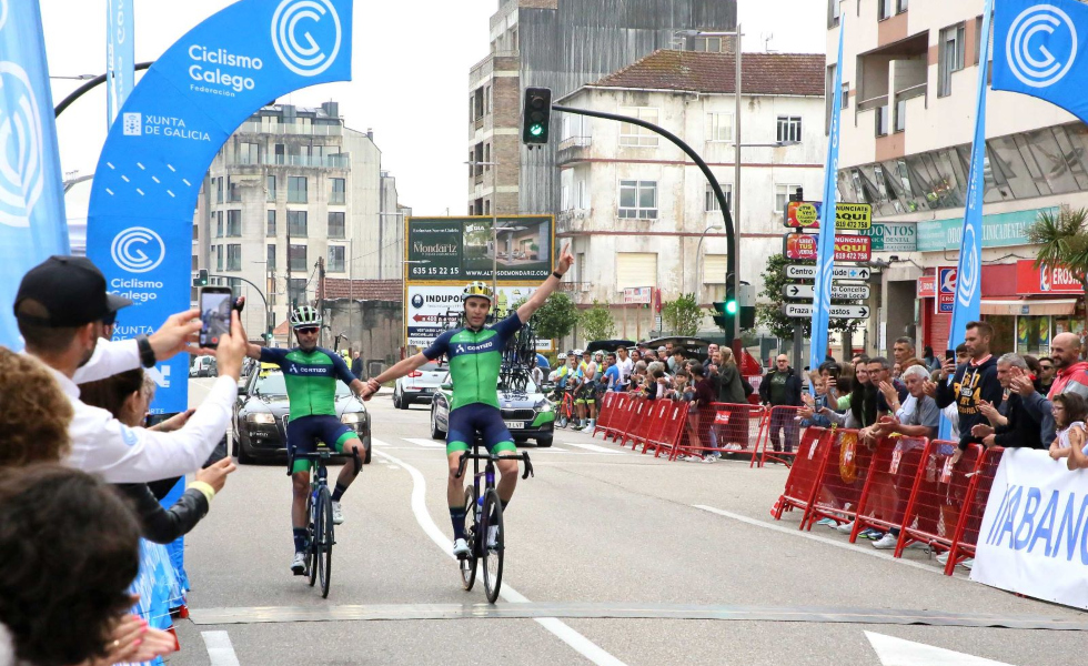 O Padronés-Cortizo apuntouse o Gran Premio Concello do Porriño con Vojtech Kmikek e Carlos Gutiérrez cruzando a liña de meta collidos da man