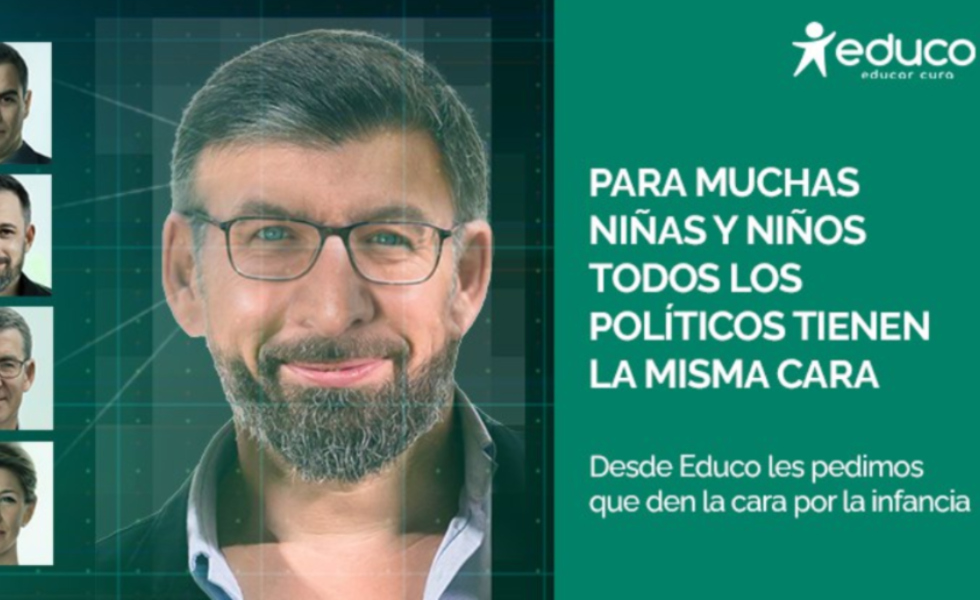 Con los datos que se desprenden de la encuesta, un día antes del inicio de la campaña electoral para las generales, la ONG Educo lanza una acción que simboliza que todos los políticos se parecen porque finalmente ninguno tiene en cuenta a los niños y las niñas. Por ello, un motor de inteligencia artificial fusiona las caras de los cuatro candidatos a la presidencia a nivel estatal (Pedro Sánchez, Alberto Núñez Feijoo, Yolanda Díaz y Santiago Abascal). La infancia piensa que son intercambiables, por eso pierden su verdadero rostro.