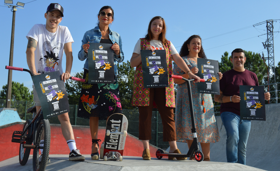 A directora xeral de Xuventude, Participación e Voluntariado, Cristina Pichel, acompañada pola alcaldesa de Mos, Nidia Arévalo, a concelleira mosense de Participación Cidadá e Mocidade, Julia Loureiro, o edil da parroquia de Pereiras, Leo Costas, e representantes da organización do evento, participou esta mañá na presentación do festival de cultura urbana Demostra, que terá lugar este víndeiro sábado, día 7 de outubro, en Mos. Esta iniciativa reunirá a amantes de diferentes disciplinas da cultura urbana no Skatepark de Sn Rafael en Pereiras.