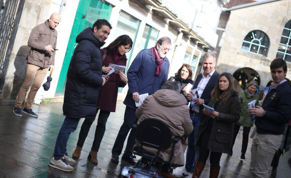 O ex presidente do Goberno estivo acompañado pola secretaria xeral do PPdeG, Paula Prado; o presidente provincial, Luis López; a secretaria xeral provincial, Luisa Piñeiro; o voceiro, Rafa Domínguez; e os candidatos pontevedreses María Martínez e Guille Juncal