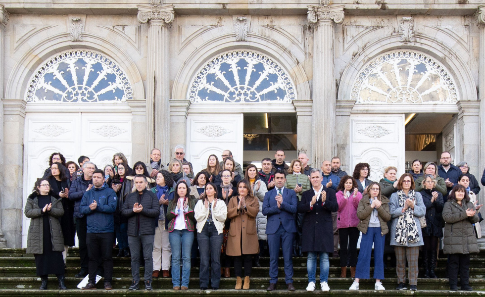 O presidente da Deputación de Pontevedra Luis López, acompañado polo vicepresidente segundo, Rafa Domínguez; e traballadores da Deputación; gardou esta mañá un minuto de silencio en sinal de respecto e recoñecemento aos dous gardas civís falecidos en acto de servizo o pasado venres 9 de febreiro en Barbate e tamén como mostra de apoio e solidariedade coas súas familias.