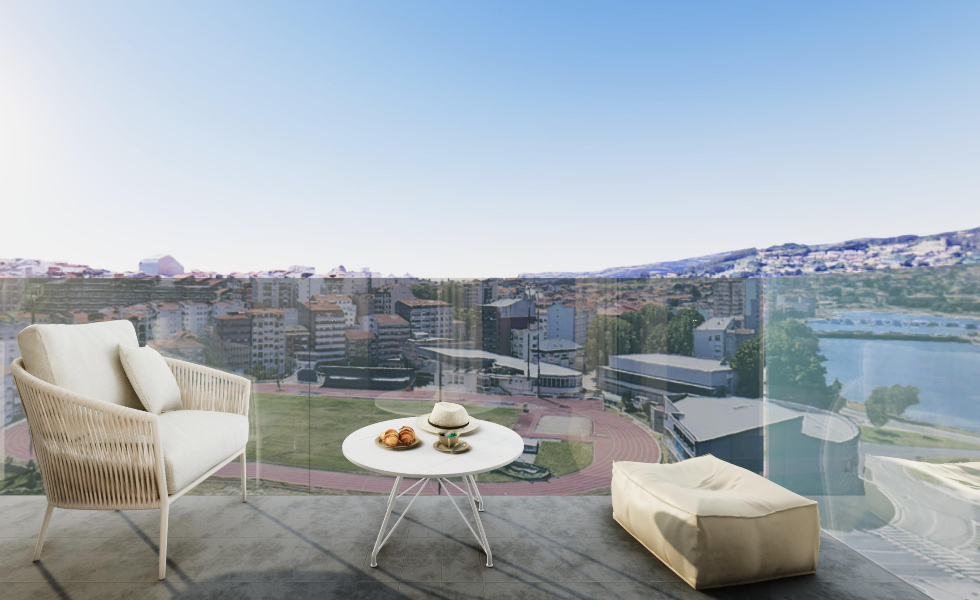 Culmia Aires da Ponte ofrece una amplia variedad de opciones, desde viviendas de 2 a 4 dormitorios con garajes y trasteros. Todas las unidades son exteriores y la mayoría cuenta con terrazas, lo que garantiza una excelente entrada de luz natural y ventilación. Además, el diseño de las viviendas y su orientación al suroeste aseguran una luminosidad óptima durante todo el día.