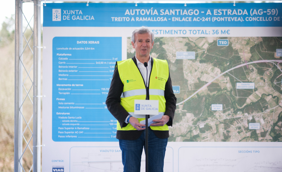 O presidente en funcións da Xunta, Alfonso Rueda, eloxiou hoxe "o bo ritmo" das obras de ampliación da AG-59 que permitirán ligar Santiago de Compostela e A Estrada en apenas dez minutos a través dunha vía de altas prestacións sen peaxes. "É unha infraestrutura moi demandada e necesaria que terá un gran impacto na rexión central de Galicia, en todos os concellos próximos á capital", indicou.