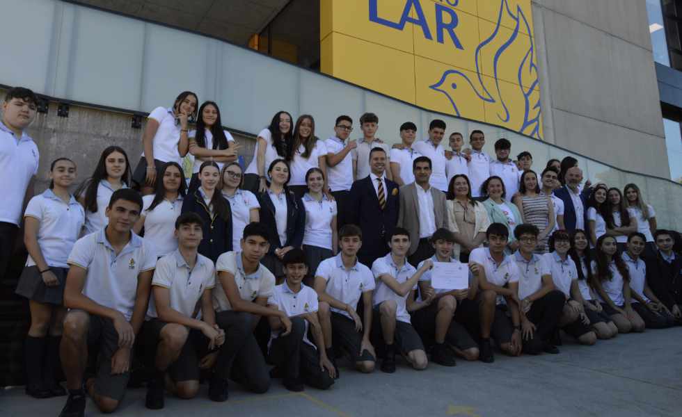 O director xeral de Comercio e Consumo, Gabriel Alén, acompañado pola delegada territorial da Xunta en Vigo, Ana Ortiz, o tenente de alcaldesa do Concello de Mos, Camilo Grandal, e a concelleira de Educación, Julia Loureiro, visitou o Colexio Lar, premiado no certame autonómico Galicons-Net de fomento do consumo responsable e sostible. Alí os representantes locais e autonómicos felicitaron ao alumnado que realizou o proxecto, galardoado con 1.500 euros na categoría da ESO (12 a 14 anos) e que se denomina Por un consumo informado e responsable.