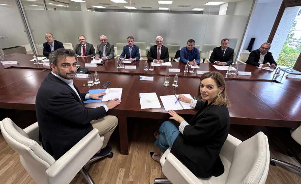 O conselleiro de Presidencia, Xustiza e Deportes, Diego Calvo, reunise xunto á directora xeral de Mobilidade, Judit Fontela, a representantes de Anetra-Galicia, Fegabus, Fegatravi e Transgacar