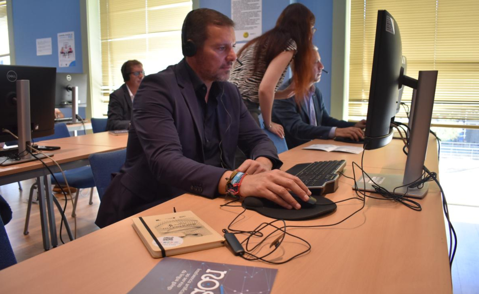 López Campos, acompañado por el secretario general de la Lingua, Valentín Gómez, participó personalmente en la Casa de la Cultura de Xinzo, donde realizó una grabación para el banco de datos del Proyecto Nós. Durante el evento, se realizó una demostración del funcionamiento de la plataforma, destacando que cualquier persona también puede contribuir telemáticamente a través del portal Dona tu voz.