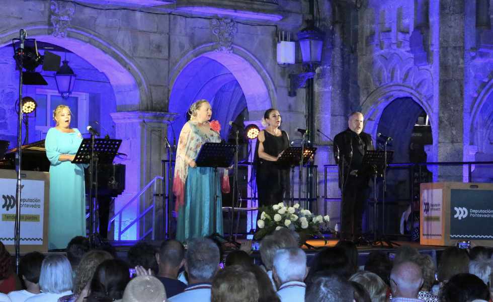 La noche de ayer será difícil de olvidar para muchos vecinos y vecinas de O Porriño y aledaños, y turistas y peregrinos, que asistieron al homenaje a Caballé y Pavarotti “Amante Montserrat, amante Luciano”, en la plaza del Arquitecto Antonio Palacios de la villa del Rubio. El espectáculo, organizado en colaboración con la Diputación de Pontevedra y el Concello do Porriño, consiguió llenar la plaza, que vibró con las actuaciones de las sopranos Montserrat Martí Caballé, Simona Todaro Pavarotti, María Dolores Crespo Abuín y el barítono Luis Santana. Al piano, acompañando en todo momento, el pianista madrileño Víctor Carbajo.