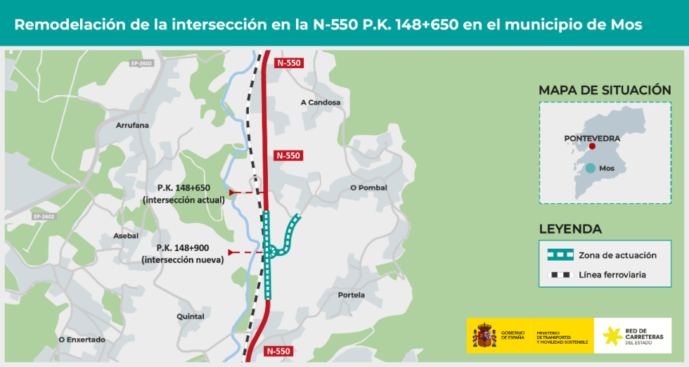 El Ministerio de Transportes y Movilidad Sostenible ha aprobado definitivamente el proyecto de trazado para la remodelación de la intersección en el kilómetro 148,650 de la carretera N-550, en Louredo, municipio de Mos (Pontevedra). Esta medida, que tiene un presupuesto estimado de 582.432 euros, supone un avance importante hacia la mejora de la seguridad vial en la zona.
