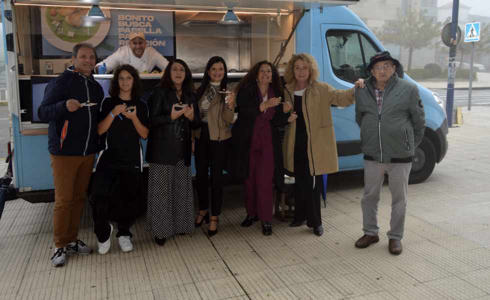 Elena Suárez Sarmiento, Xefa Territorial da Consellería do Mar, visitó esta mañana la foodtruck acompañada por la alcaldesa de Mos, Nidia Arévalo, y las concejalas Feli Rodríguez y Julia Loureiro. Durante su visita, las representantes municipales y la vecindad de Mos pudieron degustar algunos de los exquisitos bocados preparados con productos del mar.