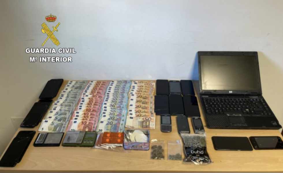 El registro ha permitido la incautación de un total de 1260 euros en efectivo, 17 teléfonos móviles, un ordenador portátil, varias dosis de cocaína y marihuana, dos básculas de precisión, así como el material utilizado para la venta de estupefacientes.